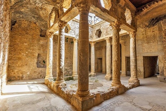 Ce qui rend ce site si remarquable, c’est son architecture souterraine unique. Contrairement à la plupart des villes romaines, où les maisons étaient construites en hauteur pour maximiser l’espace, à Bulla Regia, de nombreuses habitations étaient partiellement enterrées, offrant une protection contre les températures extrêmes de la région. Ces maisons souterraines étaient souvent richement décorées, avec des sols en mosaïque magnifiquement préservés, des fresques murales et des éléments architecturaux élaborés, offrant un aperçu fascinant de l’art et de l’artisanat de l’époque.