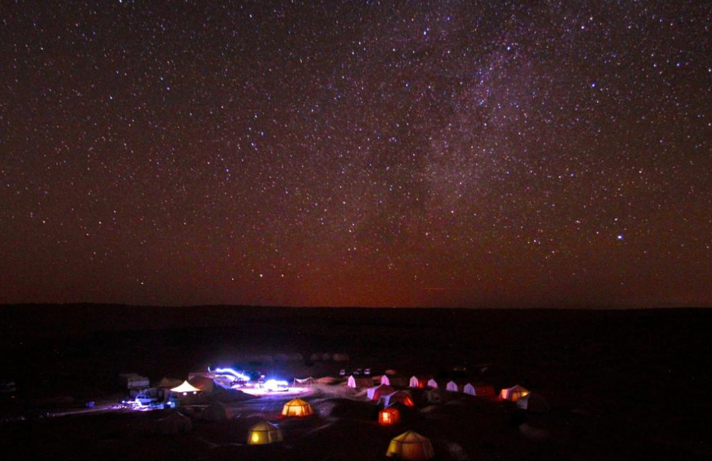 Le Camp Mars propose des tentes traditionnelles décorées de manière simple mais confortable, offrant une immersion totale dans la culture saharienne tout en garantissant les commodités nécessaires à un séjour agréable. Chaque tente est équipée de lits confortables, de coussins et de couvre-lits, pour vous permettre de vous détendre après une journée d’exploration du désert.